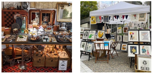 左:Rain drops antiques(アンティーク・ヴィンテージ雑貨)、右:Todd Lowrey Antiques(ヨーロッパアンティーク雑貨)※Todd Lowrey Antiquesは11/9(土)のみ出店