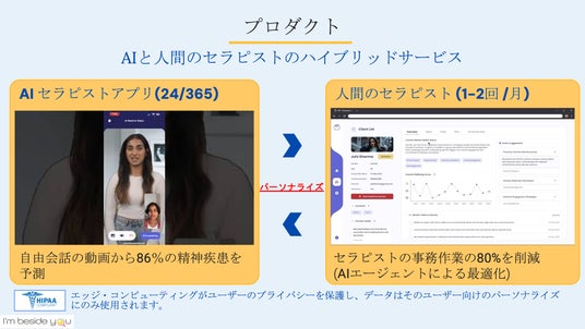 今回調達した資金を活用し、I'mbesideyouは、AIと人間の力を組み合わせ、AIにより最適化されたビジネスプロセスを通じて、各々の育ってきた環境や文化の違いをしっかりと反映した、個々人にパーソナライズされたメンタルヘルスケアを提供していきます。