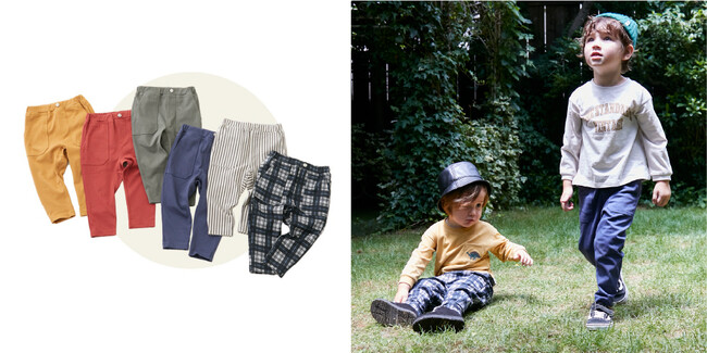 シリーズ第3弾は、第1弾として人気を博したスマイルパンツの新作をご用意しました。「毎日着るものだから子どもの着心地が良いものを」「通園通学やお出かけに使えるお手入れが楽なパンツが欲しい」ママ・パパたちの声に着目した「バックリボンポケットパンツ」「テーパードパンツ」の2種類を、カラーバリエーション豊富に、2022年9月7日(水)より全国プティマイン店舗にて一部発売開始、17日(土)より全色揃っての販売です。