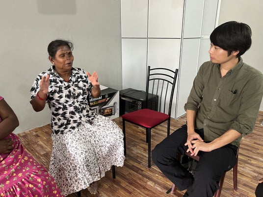代表・永井とスリランカの女性戦闘員の対話の様子