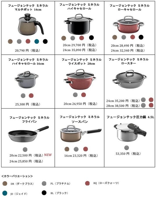 製品ラインアップ(https://www.wmf.co.jp/fusiontecmineral/index.html)
