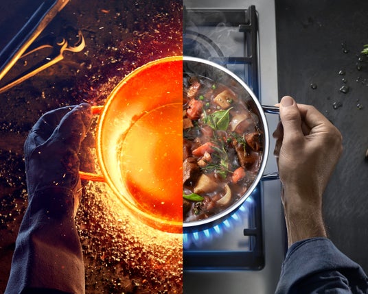 精巧で、革新的な製造プロセスによって、厳選された天然鉱石と特殊鋼を融合させ、一層化し、WMF独自のミネラル素材「フュージョンテック」を作り出します。ドイツの高いクラフトマンシップだからこそ実現した、WMF独自の素材と、機能美をあわせ持つ、「フュージョンテック ミネラル」です。