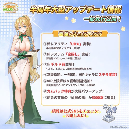 異世界経営シミュレーションRPG「異世界のんびりライフ」は、ゲームのリリース半年を記念した特別イベント「半周年感謝祭」を開催することを発表します。本イベントは間もなく開始予定で、限定UR★キャラクター「狐の天女」の登場をはじめ、豪華な特典や新システムを含む大型アップデートが実施されます。