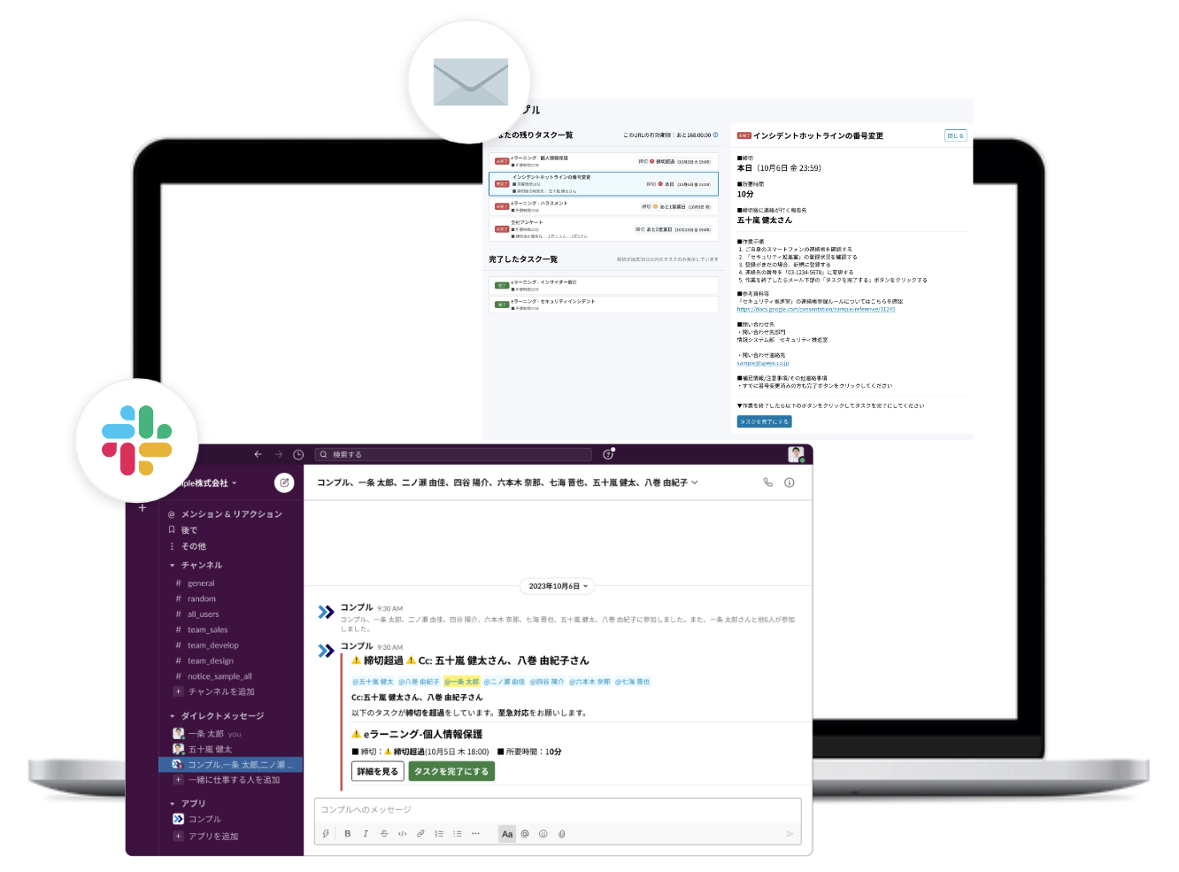 『コンプル』は、社内でのタスク依頼やその催促に関わる業務を自動化するSaaSです。