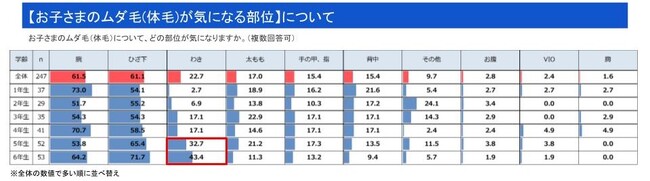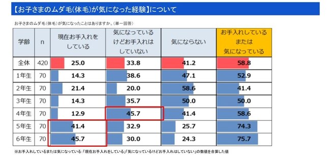 【小学5年生の74.3% 体毛が気になっている】