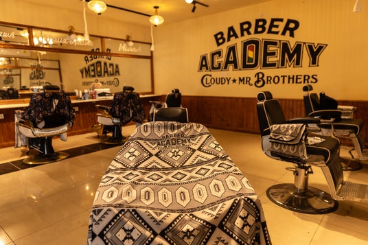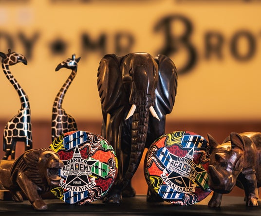BARBER ACADEMY開校記念として新たに生まれた理美容向けプロ用商材のカットクロス。 アフリカ、ガーナのテキスタイルデザイナーがガーナの伝統的なケンテ織をデザインに落とし込み、男性の力強さを表現したデザインは完全オリジナル。 BARBER ACADEMYの生徒たちも実際にこのカットクロスを使用して授業に励んでいます。