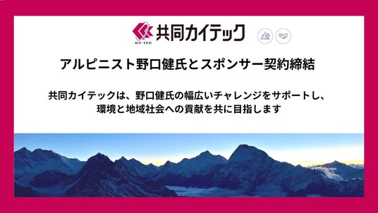 環境設備メーカーの共同カイテック株式会社(本社:東京都渋谷区、代表取締役社長:吉田 建、以下「当社」)は、有限会社野口健事務所と2025年4月1日付でスポンサー契約を締結したことをお知らせいたします。