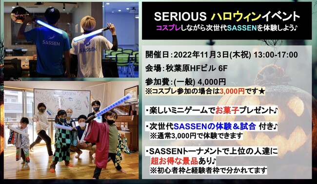 使うのはSASSEN刀だけなので、⻤滅の刃やSTARWARSなどのコスプレを邪魔することがない。保護者は光る刀を持たせて写真を撮るなど「見栄え」も魅力だ。