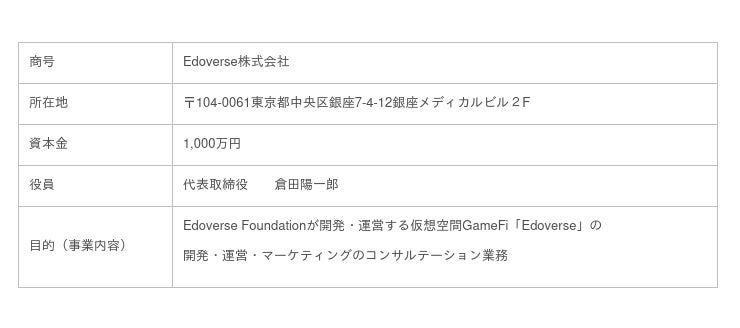 Shinwa Wise Holdings 株式会社 (本社:中央区銀座 代表取締役 倉田陽一郎)の100%子会社であるであるEdoverse株式会社(以下Edoverse社、本社:東京都中央区 代表取締役 倉田 陽一郎 )は、Now Do株式会社(以下NowDo社、本社:東京都新宿区 代表取締役 本田圭佑)と及び同子会社Edo All United株式会社(以下Edo All United社、本社:東京都新宿区 代表取締役 鈴木良介)と連携し、Edoverse Foundation(本社:Panama CEO Julia Martinez)が開発を進める仮想空間GameFi「Edoverse」(以下Edoverse)内において、教育事業及びサッカースタジアム開発運営を協業することに合意し、協力して開発を開始いたします。
