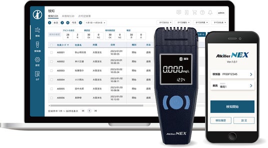 アルキラーNEXは、スマートフォンとアルコール検知器を連動させ、「いつ・どこで・誰が」検知したか点呼記録と合わせてクラウドでデータ一元管理できるサービスです。