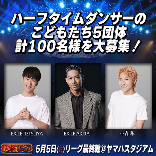 当日は"子どもの日"であることから、今回特別にEXILE AKIRAさん・EXILE TETSUYAさん・小森隼さん(GENERATIONS)・EXPG STUDIO NAGOYAの皆さまと共に、ヤマハスタジアムでパフォーマンスしてくれるこどもたち5団体100名様を募集します。