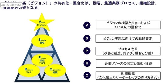 VSPROは、ビジョン、戦略、業務プロセス、リソース、組織の五つの要素で構成する