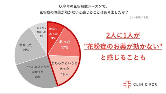 さらに、2026年の花粉飛散シーズンにおいて、「花粉症の薬が効かないと感じたことがあったか」を調査したところ、45%が「あった」と回答しました。