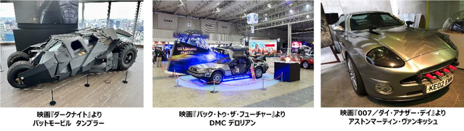 さらに、お馴染み大ヒット映画『バック・トゥ・ザ・フューチャー』のデロリアンはもちろんのこと、あの『ダークナイト』シリーズのバットモービル タンブラーや、『007/ダイ・アナザー・デイ』のアストンマーティン・ヴァンキッシュなど、ファンには堪らない名車が勢ぞろい!