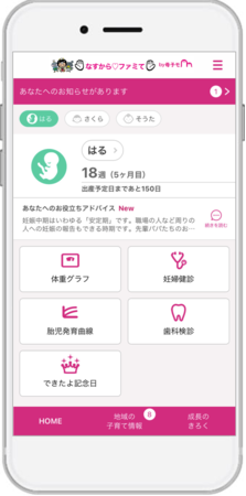 また、新型コロナウイルス感染症の影響により社会的に環境変化があるなかでも、アプリを通じて自治体からの注意情報や保健師からのアドバイスといった大切な情報をテキストや動画で必要な人に即時に届けることができるなど、非常時においても安心して出産・子育てができる環境づくりをサポートします。