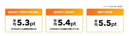 ■起床後の「目覚めの爽快感」「疲労感」「やる気」は、いずれも10段階のうち「5pt」台。
