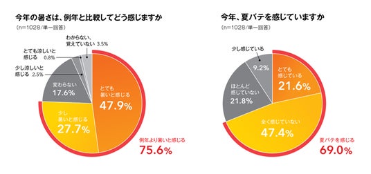 ■2024夏、例年より暑いと感じる人は75.6%。夏バテを感じた人は69.0%にのぼる。