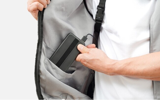 小型冷蔵庫の冷却システムを搭載しペルチェとファンの両方で体を冷却するベスト