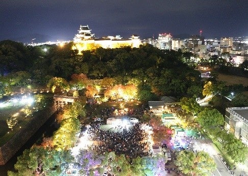 和歌山城公園内のライトアップ「和歌山城~光の回廊~」と、ドローンショー終了後に入場時間を延長する天守閣からの夜景も併せて、光が紡ぐ夜の祭典に是非お越しください。