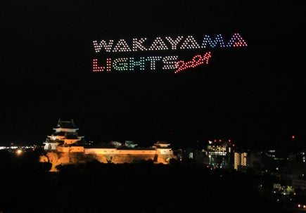「和歌山ジャズマラソン」の前日に、また、けやきスペシャルパレード翌日や冬の三連休初日に、昨年の400機を超える500機のドローンが、和歌山城天守閣上空のキャンパスに光のアートを描きます。
