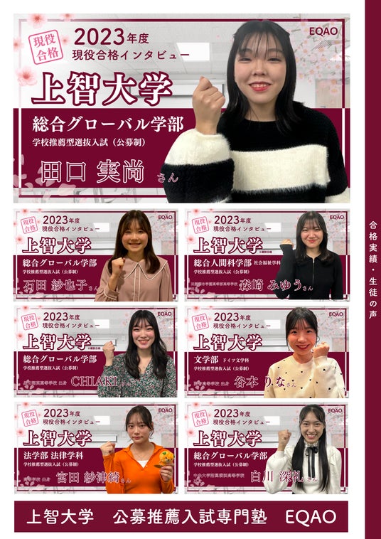 ・上智大学公募推薦専門塾EQAOは上智大学生インフルエンサーの「上京大生いとをかし」さんが上智専門コースのアンバサダーに就任しています。
