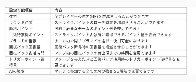 体力、ラウンド時間、ブランドの重複選択等がルールエディターで可能に!