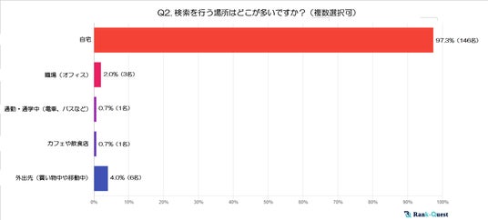 最も多かった回答は「自宅」で97.3%という圧倒的な結果でした。70歳以上の方々にとっては、自宅で落ち着いた環境の中で検索するのが主流と言えます。