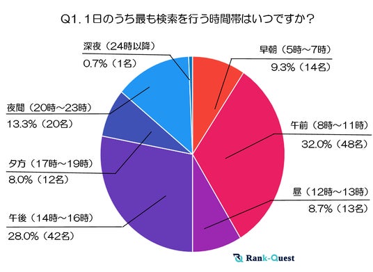 次いで多いのは「午後(14時~16時)」の28%で、昼食後に時間のゆとりができる午後のひとときに検索を活用する様子が見られます。