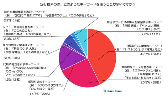 次いで多かったのは「具体的なニーズを含むキーワード」25.3%で、目的や条件を明確に入れて一度に情報を絞り込みたい人も一定数いる様子がうかがえます。