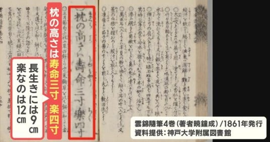 江戸時代に「寿命三寸、楽四寸」と言うまくらの高さに関しての諺があった事はご存じでしょうか?これは「4寸(約12cm)程度の高い枕は髷を結った髪型が崩れず楽だけど、長生きしたければ三寸(約9cm)程度の高さにしておく方が良い」と言う意味だそうです。