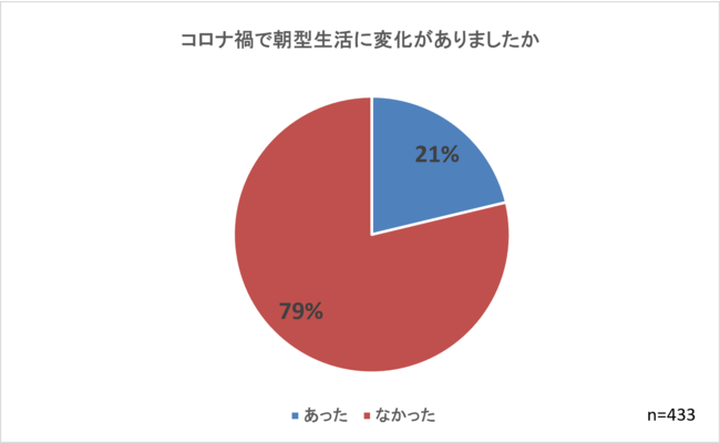 コロナ禍での朝型生活、5人に1人が「変化あり」
