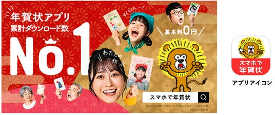 「スマホで年賀状(TM)」は、年賀状の作成から印刷、配送まで年賀状づくりのすべてがカンタンにできるスマートフォンアプリです。パソコン版「ネットで年賀状」のアプリ版としてリリースされた2014年から2024年の11年間で累計700万ダウンロードを達成。スマホひとつでカンタンに年賀状をつくることができる点が支持され、年賀状アプリではNo.1※の王道サービスです。