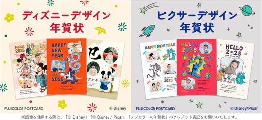 株式会社スフィダンテ(本社:東京都渋谷区、代表取締役社長:安本圭佑)は、無料アプリ「スマホで年賀状2025」「スマホで写真年賀状2025」(iOS 版/Android 版)にて、「ディズニー」と「ピクサー」の人気キャラクターによるデザイン年賀状を販売いたします。