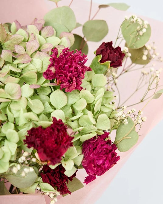 「色あせないぬくもりを贈る、カーネーションのドライフラワーブーケ[ラッピング付]」