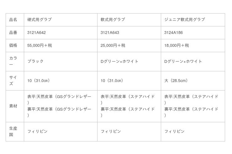 今回発売する商品は、ダルビッシュ選手が実際に使用しているグラブのデザインやカラー、仕様を取り入れたレプリカモデルで、硬式用、軟式用、ジュニア軟式用の3種類を用意しています。