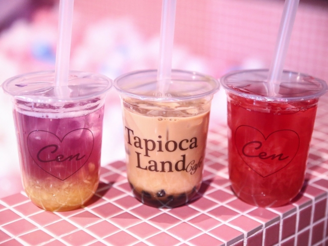様々な種類のタピオカランドオリジナルドリンクがあります。