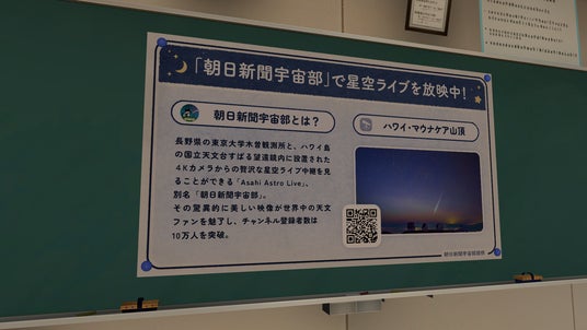 本ワールドでは、ゲームとしての宇宙体験に加え、「本物の宇宙」に触れるきっかけも用意しています。これまで流星群など数多くの天体イベントを発信してきた朝日新聞宇宙部の取り組みを紹介するコーナーを設置、ハワイ・マウナケア山頂で撮影された星空写真も展示しており、実際に観測された美しい宇宙の姿を感じることができます。VRChatの中で星空を楽しんだあと、現実の宇宙へと興味を広げる入口として、本コンテンツをご活用いただけます。友人や家族と一緒に語り合いながら、宇宙への関心を深めるきっかけとしてもお楽しみください。