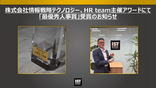 株式会社情報戦略テクノロジー(東京都渋谷区、代表取締役社長 高井淳、以下「当社」)は、ポート株式会社(東京都新宿区、代表取締役社長CEO 春日博文)の連結子会社である、株式会社HRteam(東京都渋谷区、代表取締役社長 上原一輝、以下「HRteam社」)が2025年10月17日に開催した「人事交流×アワード」において、招待企業30社の中から「最優秀人事賞」を受賞したことをお知らせいたします。