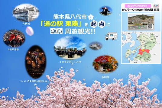 九州周遊観光活性化コンソーシアム(代表機関:トラストパーク株式会社 本社:福岡県福岡市博多区、代表取締役:山川 修)は、令和2年7月豪雨被災地の観光振興を目的として、令和3年度に実施した熊本県南(15市町村)バケワーク・冬季モニターツアーを経て、実証地の一つ「道の駅東陽」に「車泊(くるまはく)・休憩駐車管理システム(RVパークsmart)下部※1.参照」を開設し、3月1日より予約受付を開始しました。