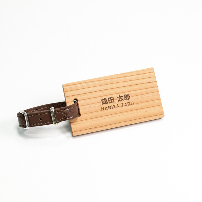 ■成田空港オリジナルネームタグ<空港伐採木使用> 販売価格:2,200円(税込)お好きな文字を名入れできるオーダーメイド品。キャリーバッグに付けて、空旅のお供にも。