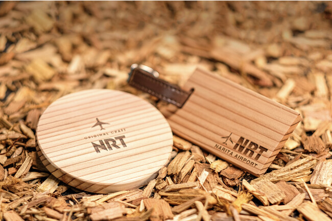 ■成田空港オリジナルクリアファイル 販売価格:300円(税込)成田空港伐採木活用グッズ 成田空港では「サステナブル NRT2050」を策定し、持続可能に発展するサステナブル・エアポートを目指して、限りある資源の有効活用を進めています。 今回、C滑走路の新設をはじめとした成田空港の更なる機能強化に伴い発生した伐採木がコースターとネームタグにアップサイクルしました。1枚1枚木目や色味が違って同じものがなく、味わいのある商品に。
