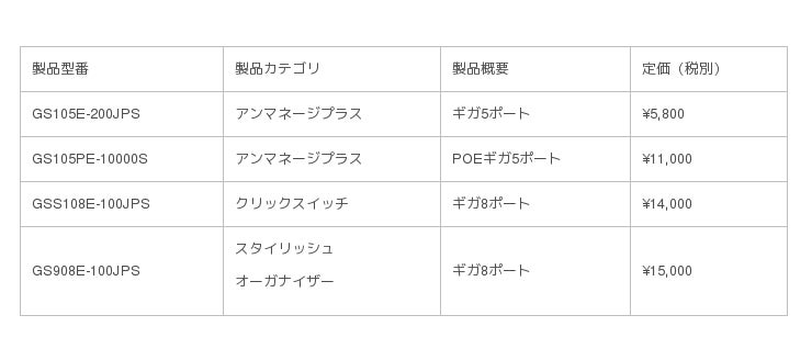 日本語GUI対応の第四弾として『GS105E』『GS105PE』『GSS108E』『GS908E』のファームウェアを公開いたしました。これで日本語対応製品は、全18機種となります。