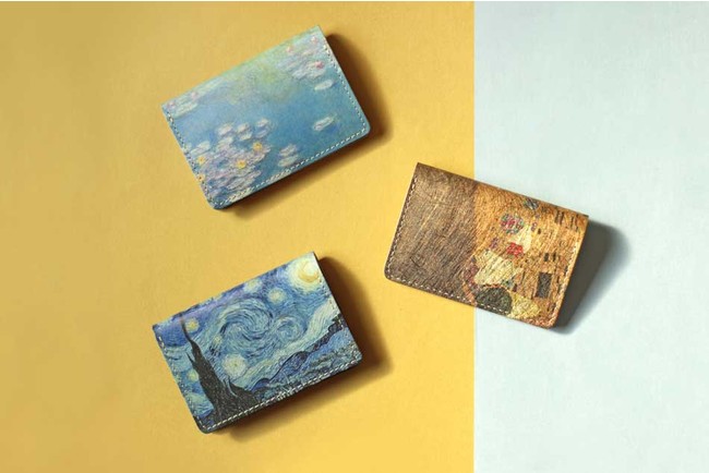 素材には国産の本革を100%使用し、特殊な加工で凹凸をつけているので、指で触ってモネの作品を楽しんでいただけます。モネ以外にもゴッホやクリムトの作品もご用意。