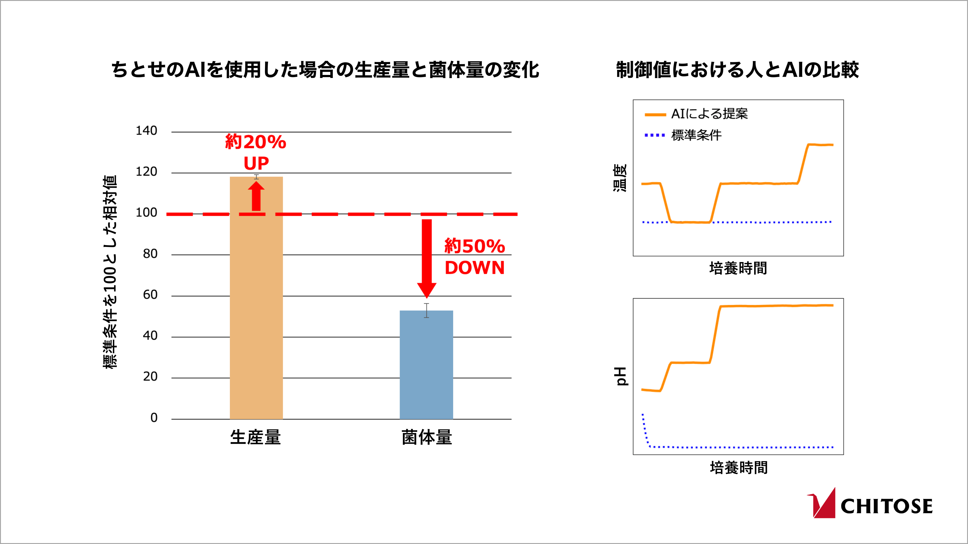 ちとせは今後も、様々なバイオ生産を対象にAI培養制御システムの社会実装に取り組み、食産業においても、人々の健康に繋がる機能性食品等素材の効率的かつ安定的な生産に貢献してまいります。