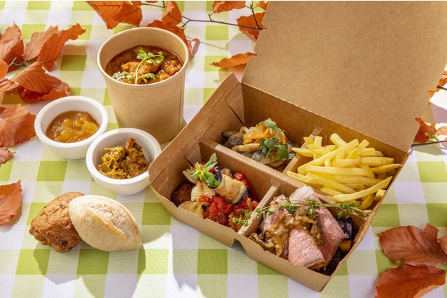 ■オータムランチ&ディナービュッフェ テイクアウトボックスビュッフェで提供しているメニューの一部より、お好きなメイン料理3品、スープ料理1品をお選びいただけるテイクアウトボックスです。