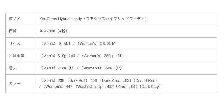 Kor Ciruss Hybrid Hoody コアシラスハイブリッドフーディ Color: 236 (Dark Bolt)