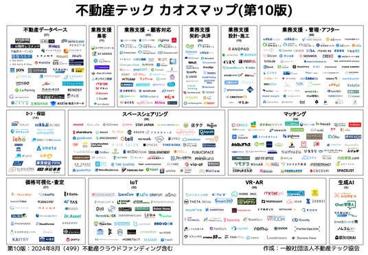 不動産 × IT を促進する一般社団法人不動産テック協会[以下、不動産テック協会:代表理事 滝沢 潔(株式会社ライナフ 代表取締役)、同代表理事:巻口 成憲(リーウェイズ株式会社 代表取締役)]は 2024年8月28日(水)「不動産テック カオスマップ 最新版(第10版)発表セミナー 2024」にて、不動産テック カオスマップ第10版を発表いたしました。