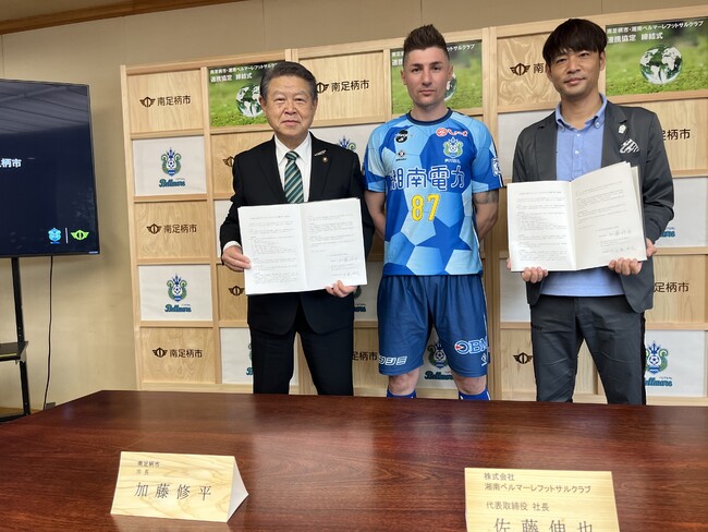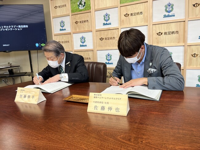 この度、湘南ベルマーレフットサルクラブは、南足柄市との包括連携に係る協定を締結することに合意し、締結式を行いました。