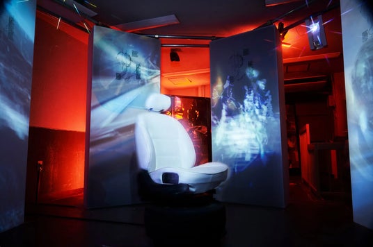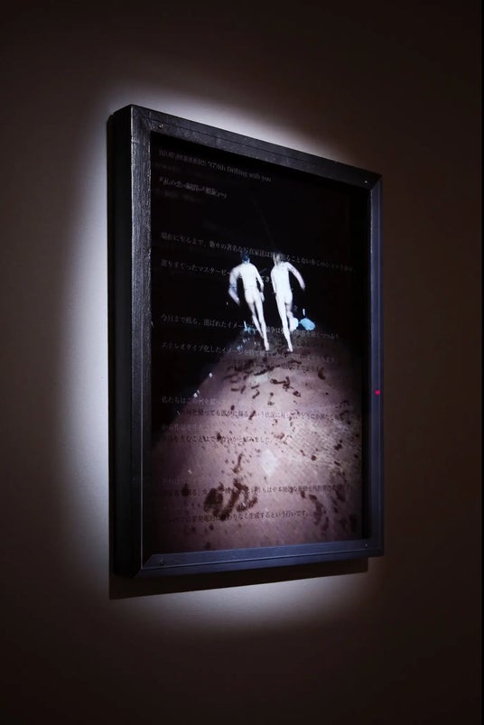 車のシートに乗った鑑賞者が回転しながら体験する映像インスタレーションと、約300枚のバライタ印画紙を手焼きプリントしてパズル状に組み合わせた大きい平面から成ります。