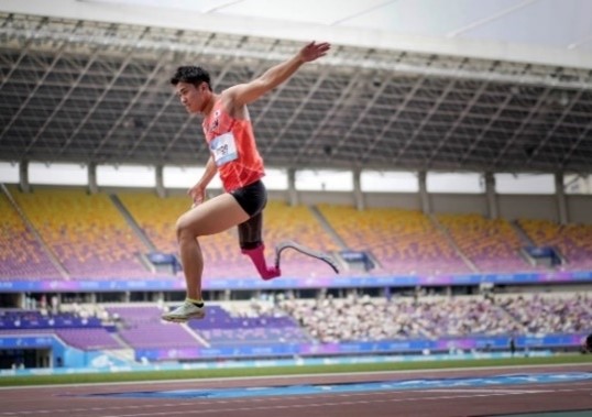● 初出場のアジアパラ競技大会において「走り幅跳び」種目で金メダルという快挙を成し遂げた